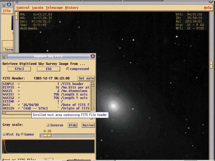 XEphem is a commercial product, but it is also available as a free download. I will tell you that the download version is still fairly spectacular. The CD-ROM (commercial version), however, comes with much more, including the full Hubble Guide Star Catalog (not included in the download), a huge number of additional deep sky objects, a full printed manual, and pre-built binaries for various platforms. While you can connect to the Internet when you want additional information such as a close-up (as in the previous paragraph), you may find it well worth the price.