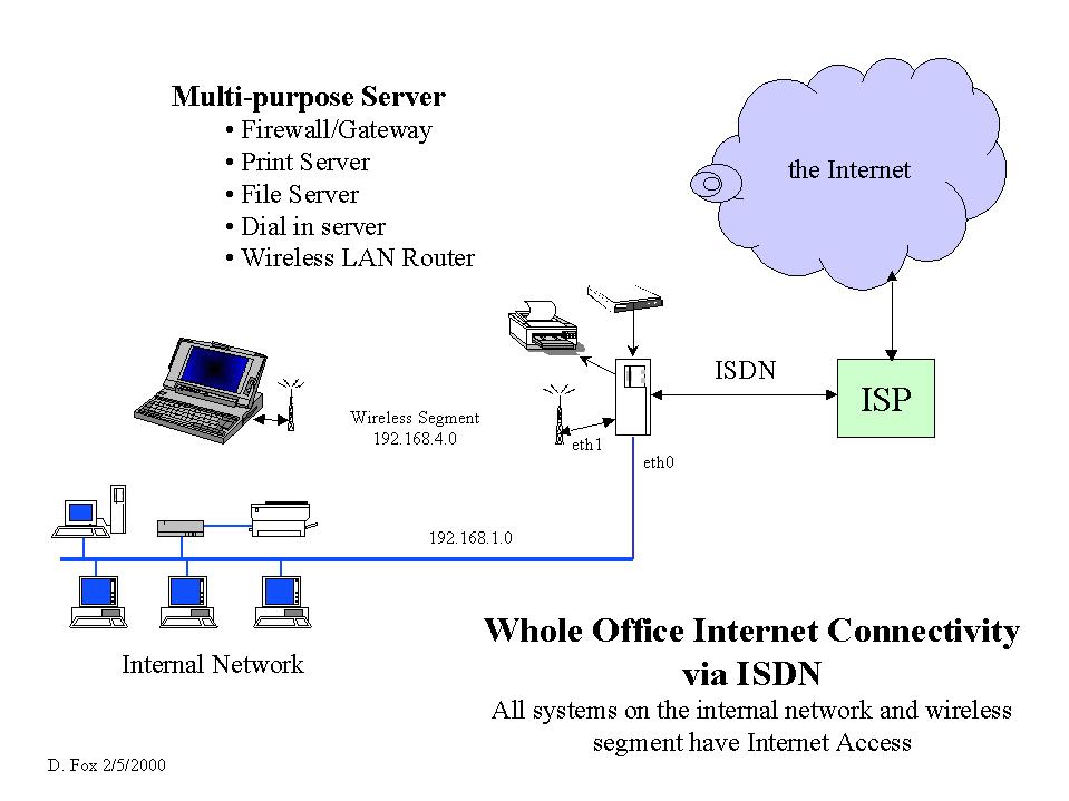 My goal was to give my notebook computer running Win98 the ability to move about my SOHO. I was successful in accomplishing this at a cost of only $250 by utilizing my existing Linux server and two Symphony cards.