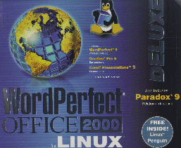 WordPerfect Office 2000 Deluxe includes everything most business users need to make a computer useful: a word processor, spreadsheet, database, calendar/PIM, presentation graphics software and even a game. One box contains everything needed to use Linux in an office environment, and if you don't have Linux yet, there is even a CD with Corel's LinuxOS distribution.