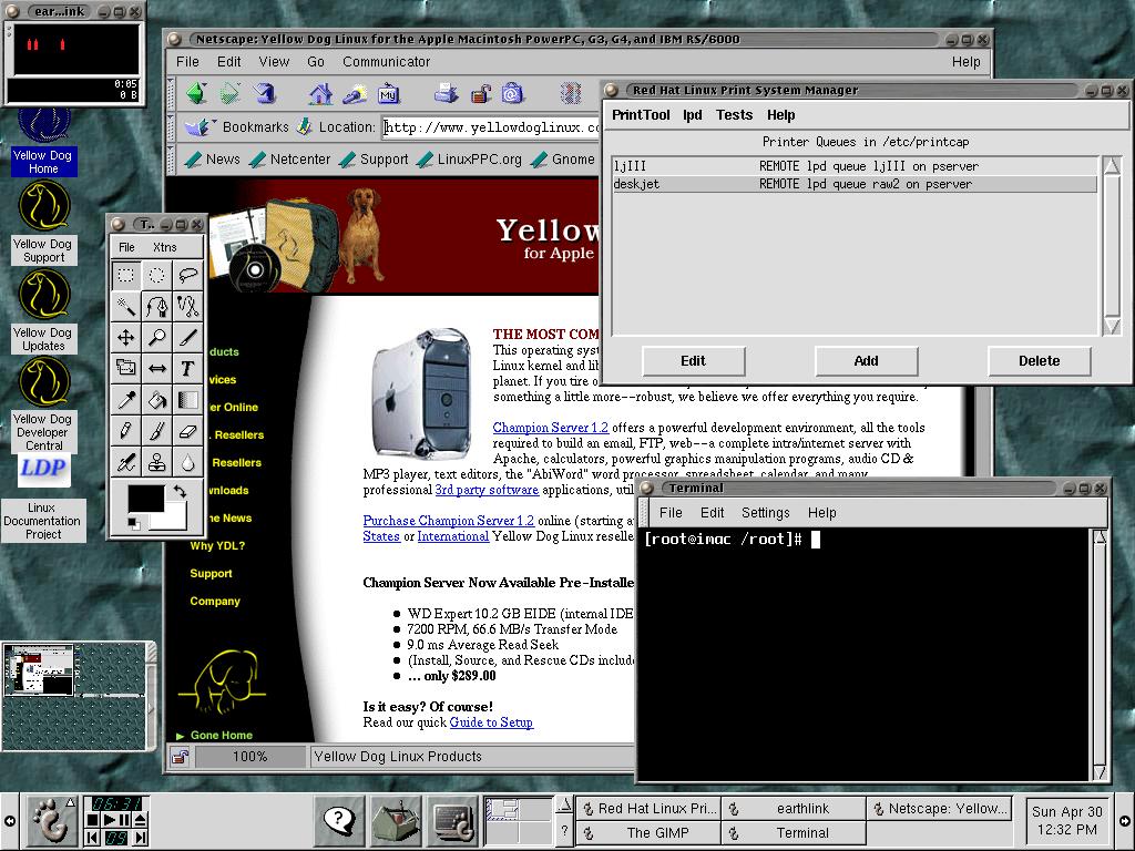 Well, wouldn't you know it: I soon discovered that folks were running Linux on these things, so I just had to try that out. Linux on a Mac has now come of age, with about half-dozen vendors offering distributions for PowerPC processors.
