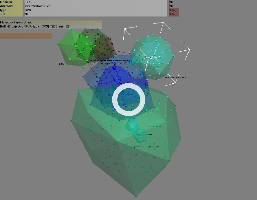 For the Oil Rig, the CAD application's native data structures (pipes, valves, walkways and so forth) are used in a similar way. When the application is called to render a tower, it can decide what would be an appropriate rendering for this frame--for example, it may decide to always render the tower, because it is an important landmark for navigation. Thus, the application can change representations dynamically to suit conditions. Similarly, applications with special lighting algorithms (see Figure 5), or atypical behaviours such as abstract information visualization (see Figure 6) use their own bespoke structures and algorithms to maintain real time performance.