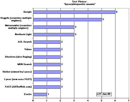 I run this test quite often for my own purposes and rarely record the results. But last December I did record them, and I repeated the test again on June 27--nearly seven months later. This time I added two more tests: one for an obscure blood disorder and the other for a Linux system call. Here are the results: