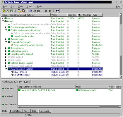 Figure 3. Lineo's Embedix Target Wizard Selection and Configuration Interface