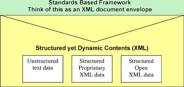 With Jabber, XML messages become an ``envelope'' or container (see Figure 6). The contents of that envelope are infinitely flexible. XML's data is ``structured'', but also potentially dynamic--able to change constantly. It can even define the terms by which it is understood.