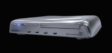 The Indrema Entertainment System (IES) is packaged in a sleek enclosure with the look and feel of a top-of-the-line VCR.