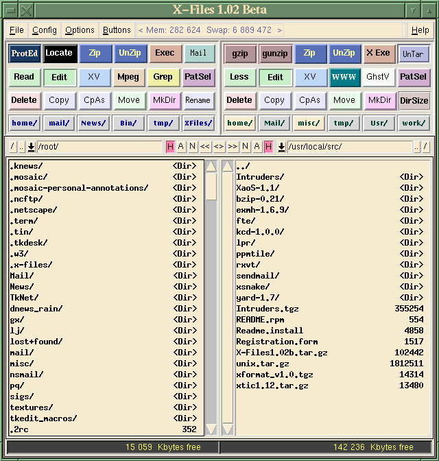 From two Finnish college students, Juha Forsten and Mikko Kiviniemi, comes a new variation on the theme of translating basic Unix commands into a graphical form with Tcl/Tk. X-Files superficially resembles FileRunner (reviewed in LG #9) due to a shared ancestry: those legendary Amiga file managers which seem to inspire such loyalty and nostalgia. This new one has quite a list of features, all of which are configurable to an extreme.