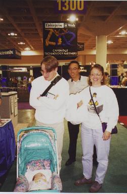 Linus, Tove, Miranda and one of their fans tour the Linux Pavillion