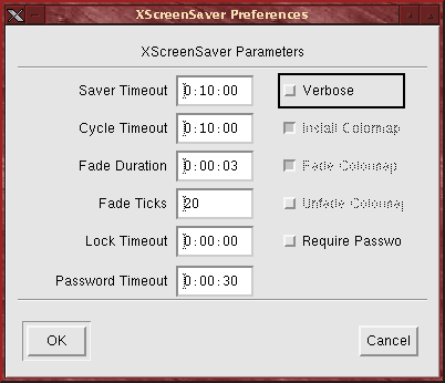 Also, the command /usr/bin/X11/xset can be used to set the desired bell volume, key click, DPMS (energy saving) features and mouse parameters. This command can also set autorepeat and screensaver parameters.