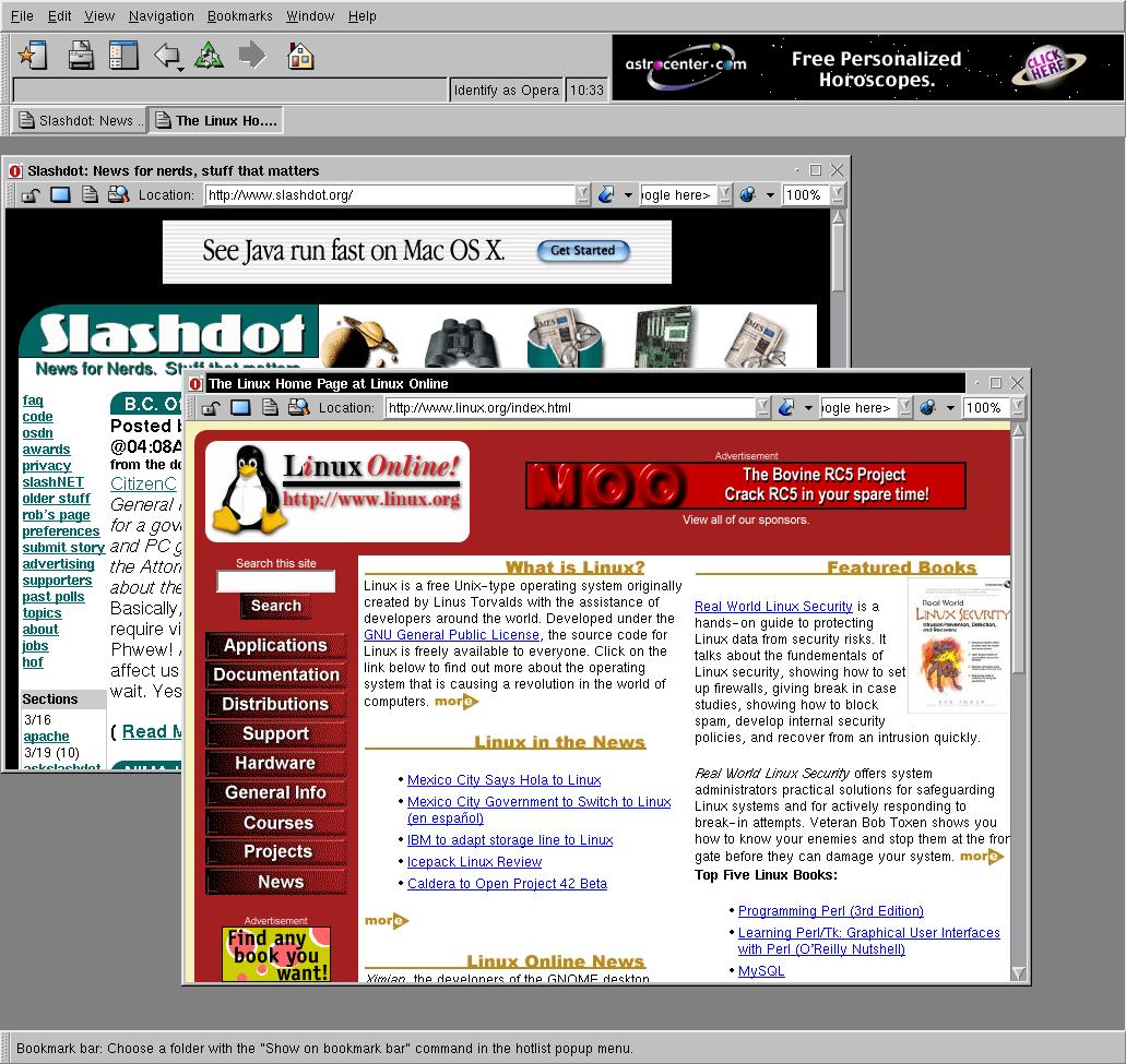 [Heather] Well, you can take a look at a bunch of the screenshots over at LibraNet, because they give a very clear sense of what the K desktop looks like. The Gnome desktop also looks very similar. (http://www.libranet.com)
