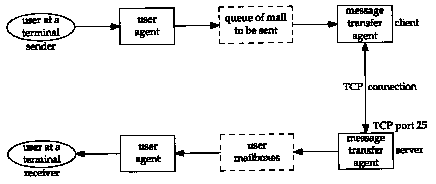 This chapter examines the exchange of electronic mail between the two MTAs using TCP. We do not look at the operation or design of user agents.