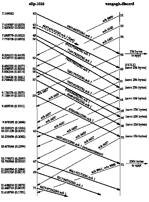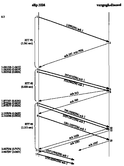 Figure 21.13 shows the tcpdump output. (We have removed the connection establishment, the connection termination, and all the window advertisements.)