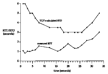 What's needed is to keep track of the variance in the RTT measurements, in addition to the smoothed RTT estimator. Calculating the RTO based on both the mean and variance provides much better response to wide fluctuations in the round-trip times, than just calculating the RTO as a constant multiple of the mean. Figures 5 and 6 in [Jacobson 1988] show a comparison of the RFC 793 RTO values for some actual round-trip times, versus the RTO calculations we show below, which take into account the variance of the round-trip times.