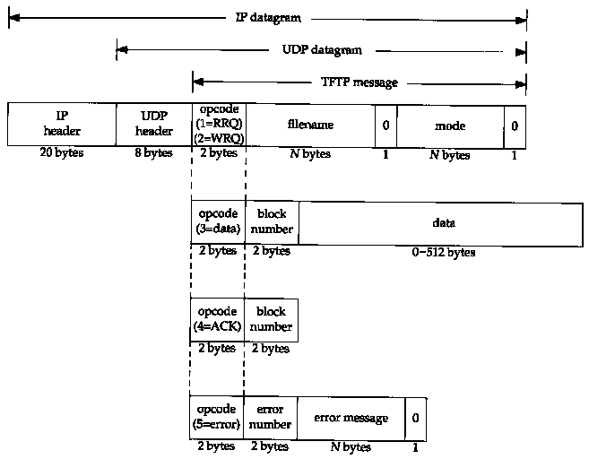 This chapter provides an overview of TFTP because we'll encounter it in the next chapter with the Bootstrap Protocol. We also encountered TFTP in Figure 5.1 when we bootstrapped the host sun from the network. It issued a TFTP request after obtaining its IP address using RARP.